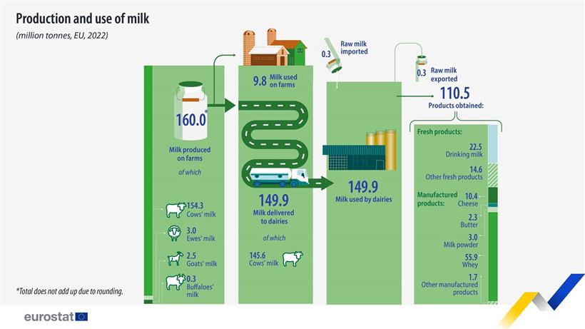 Η Ευρωπαϊκή Ένωση αποτελεί έναν από τους μεγαλύτερους παραγωγούς γάλακτος στον κόσμο, με την ετήσια παραγωγή να αγγίζει τα 160 εκατομμύρια τόνους το 2022.