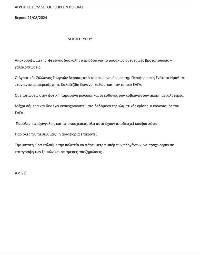 Μια παραγωγή που χάθηκε, ελπίδες που διαλύθηκαν. Οι αγρότες της Ημαθίας βιώνουν μια πρωτόγνωρη κρίση. Μεγάλο μέρος της παραγωγής τους έχει καταστραφεί, ενώ τα εργοστάσια και οι επιλεκτικές διαδικασίες παραλαβής έχουν οδηγήσει τους αγρότες σε απογοήτευση καθώς οι τιμές των ροδάκινων και αδυναμία διάθεσης των προϊόντων τους, τους έχει οδηγήσει σε απόγνωση.