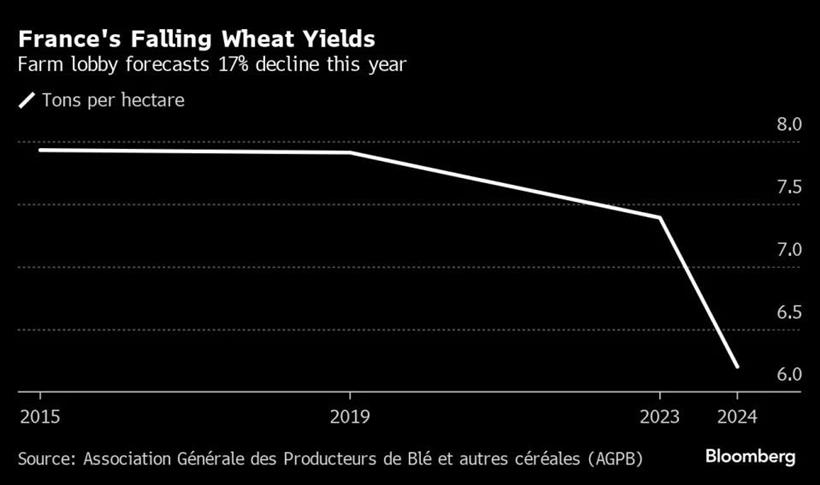 Η συγκομιδή μαλακού σιταριού στη Γαλλία θεωρείται ότι θα πέσει στη χαμηλότερη των τελευταίων 40 ετών και το αγροτικό λόμπι της χώρας προειδοποιεί για «διαρθρωτικές» ζημιές στις αποδόσεις.