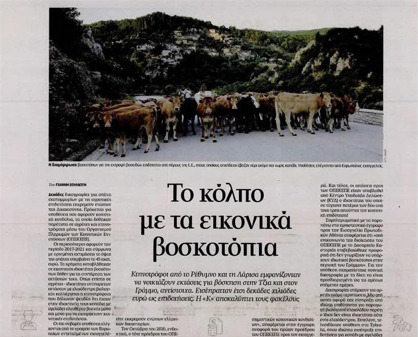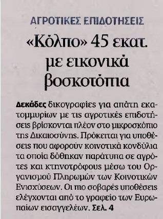 Τα χρήματα καταβλήθηκαν σε εικονικούς ιδιοκτήτες βοσκοτόπων δήθεν για τη συντήρηση των εκτάσεών τους. Το θέμα έχει πάρει πλέον διαστάσεις πυρκαγιάς στα ΜΜΕ, με αποκαλύψεις που συγκλονίζουν καθημερινά την κοινή γνώμη.