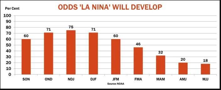 Η La Nina μπορεί να βλάψει τις αποδόσεις σόγιας στην Αργεντινή, όπου τα επίπεδα εδαφικής υγρασίας παραμένουν κάτω του μέσου όρου. Οι ουδέτερες συνθήκες κατά τη διάρκεια του καλοκαιριού στο βόρειο ημισφαίριο είναι πιο ευνοϊκές, αν και παρατηρήθηκαν τόσο καλύτερες όσο και χειρότερες από το κανονικό αποδόσεις στις ΗΠΑ κατά τη διάρκεια προηγούμενων καλοκαιριών χωρίς La Nina ή El Nino.