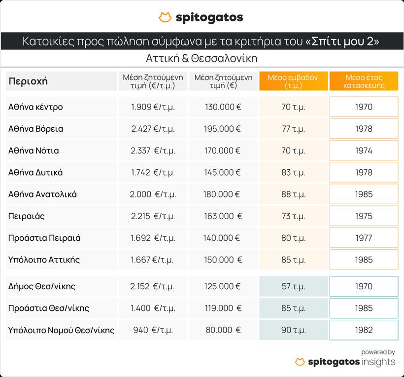 Αναμένοντας την έναρξη του προγράμματος «Σπίτι μου 2», το Spitogatos Insights παρουσιάζει μια ολοκληρωμένη ανάλυση της τάσης των τιμών αλλά και της προσφοράς κατοικιών προς πώληση που πληρούν τα κριτήρια του νέου στεγαστικού προγράμματος, όπως καθορίστηκαν σε πρόσφατες ανακοινώσεις. Η ανάλυση βασίζεται στον Δείκτη Τιμών του Spitogatos (SPI), ο οποίος αποτυπώνει τις τάσεις τιμών στην εγχώρια αγορά ακινήτων μέσα από εκατομμύρια πραγματικά δεδομένα αγγελιών στην πλατφόρμα του Spitogatos – τη Νο.1 ιστοσελίδα αγγελιών ακινήτων στην Ελλάδα.