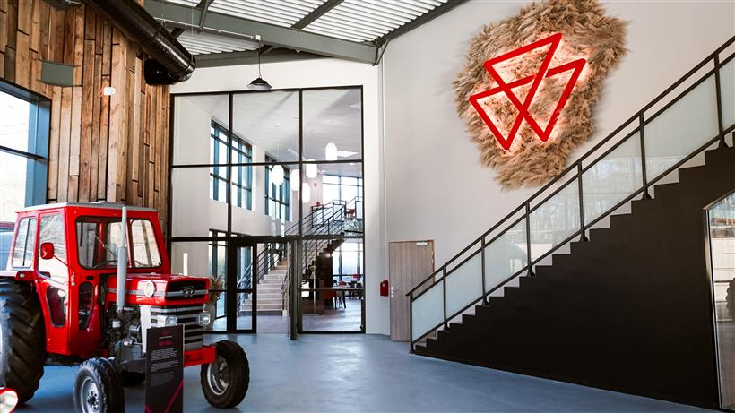 Αυτός ο μοναδικός στο είδος του προορισμός φιλοξενίας προσφέρει στους πελάτες της Massey Ferguson, στους αντιπροσώπους, στους συνεργάτες, στους φοιτητές και στους εργαζόμενους ένα ευρύ φάσμα αιθουσών συνεδριάσεων, ένα αμφιθέατρο, εκθέματα προϊόντων και υπηρεσιών, ένα κατάστημα εμπορευμάτων, ένα εστιατόριο και ένα μουσείο που απεικονίζει τα 175+ χρόνια εμπειρίας της μάρκας BorntoFarm (το μουσείο θα ανοίξει τον Απρίλιο του 2025).