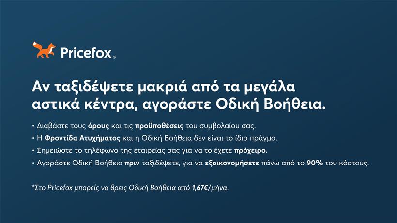 *Στο Pricefox μπορείς να βρεις Οδική Βοήθεια από 1,67€ το μήνα.