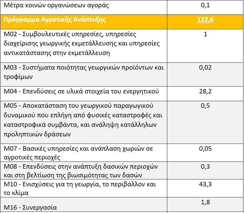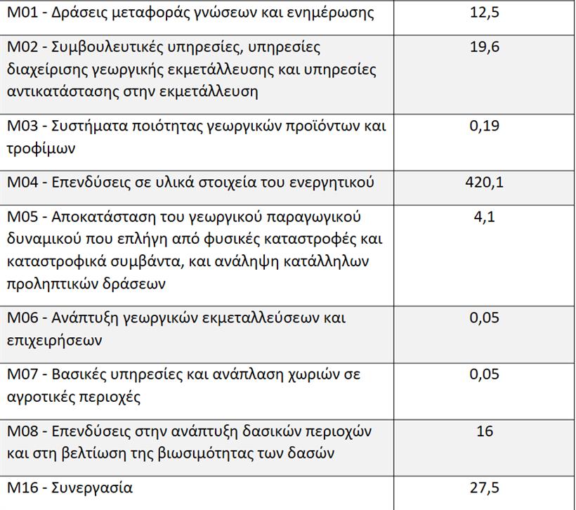 Τα στοιχεία με την κρατική ενίσχυση, ανά κωδικό, όπως κοινοποιήθηκαν, έχουν ως εξής: