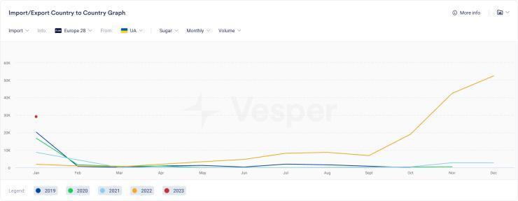 Η Ευρωπαϊκή Ένωση των «28» έχει εισαγάγει 143.000 τόνους ζάχαρης από την έναρξη της περιόδου 2022/23 (Οκτώβριος έως Σεπτέμβριος), αριθμός που είναι σημαντικά υψηλότερος από τα προηγούμενα έτη. Η Ρουμανία ήταν ο κύριος αποδέκτης της εισαγόμενης ζάχαρης, έχοντας συσσωρεύσει 52.800 χιλιάδες τόνους από τον Οκτώβριο έως τον Ιανουάριο. Η Πολωνία έχει λάβει 20.700 χιλιάδες τόνους, η Ιταλία 20.200 χιλιάδες τόνους και η Ελλάδα 16.430 χιλιάδες τόνους αντίστοιχα.