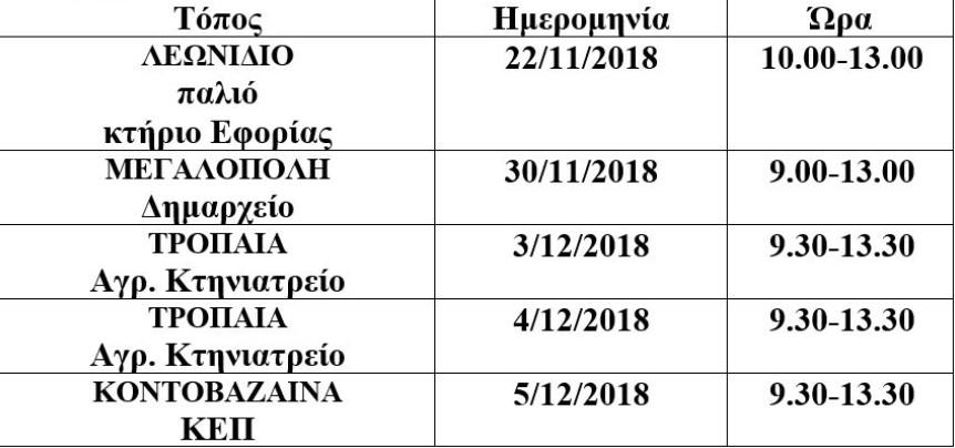 • κατά τις ημερομηνίες 6 και 7 Δεκεμβρίου στο Αγροτικό Κτηνιατρικό Γραφείο Λεβιδίου,